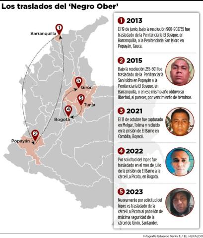 “Estuvo preso de 2013 a 2015, y se cumplieron dos traslados. Luego queda en libertad hasta que es capturado en 2021. De ahí pasa a Boyacá, luego a La Picota de Bogotá y ahora a Girón, en Santander”, explicó la fuente.