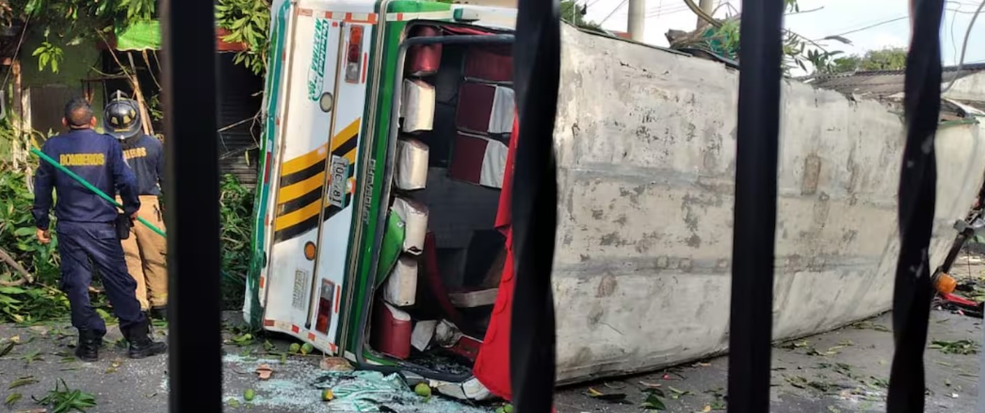 Esto llevó a que el bus arrollara a peatones y motociclistas antes de impactar violentamente contra un árbol y volcarse sobre la vía.