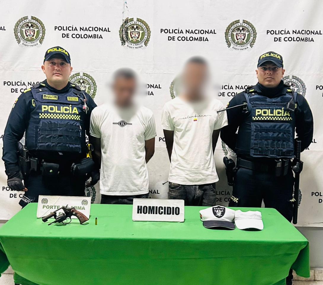 Las dos personas arrestadas, quienes registran anotaciones judiciales por delitos como homicidio, porte ilegal de armas y hurto, fueron dejadas a disposición de la Fiscalía General de la Nación, donde deberán responder por los delitos de homicidio y porte ilegal de armas de fuego.