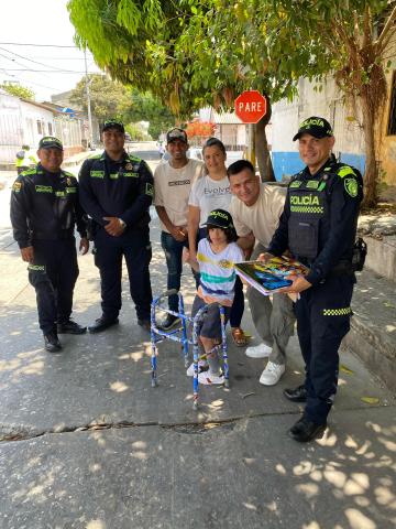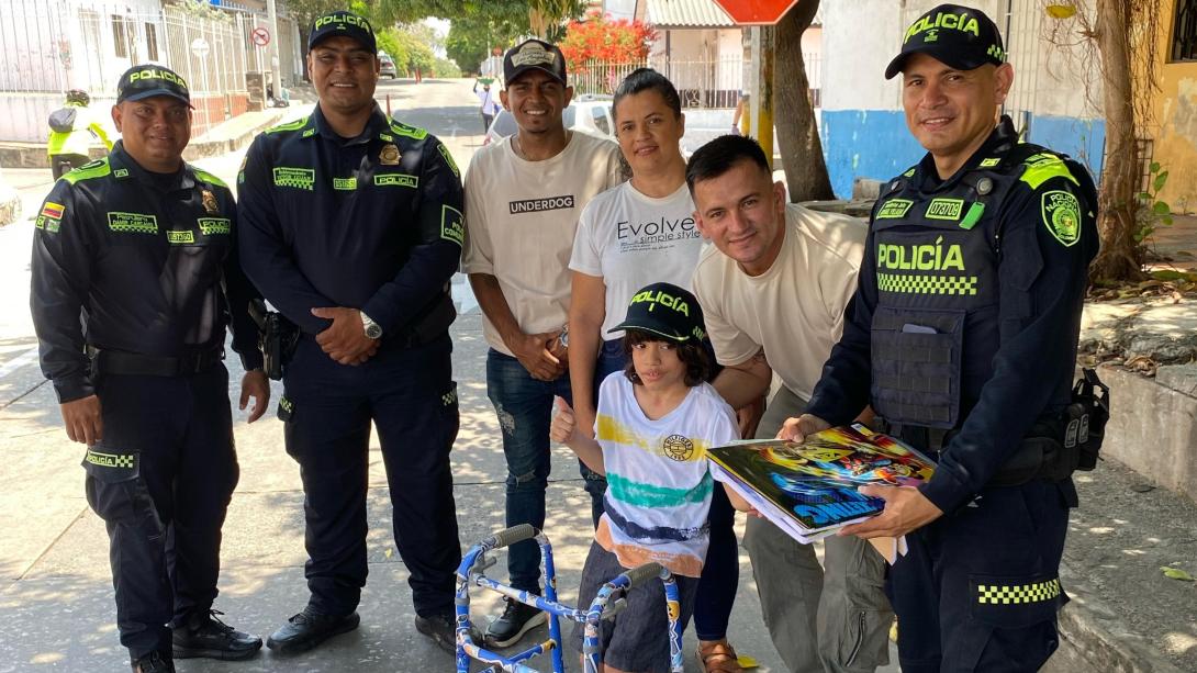 Uno de los compromisos de la Policía, además de preservar el orden público, es su acercamiento con las comunidades en busca de su bienestar social. Un ejemplo de ello es Christopher Pinzón, de 8 años, un niño con parálisis cerebral que ha contado con el gran apoyo de las autoridades. Le hicieron la entrega de un caminador acorde a su edad y otros detalles.