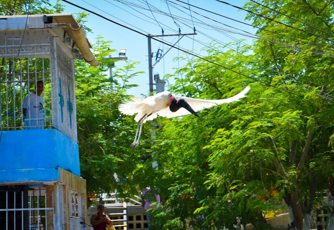 El ave, considerada una de las especies de cigüeña más grandes de América, había sido vista sobrevolando y posándose en varios sectores de la capital del Atlántico, lo que despertó curiosidad entre residentes y usuarios de redes sociales que compartieron fotos y videos de su presencia.