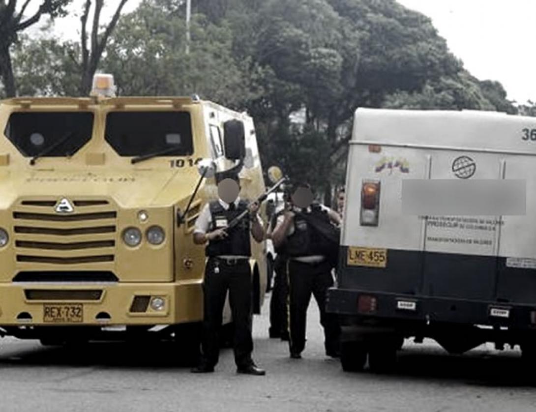 En la escena fueron encontradas dos armas de fuego, entre ellas una pistola nueve milímetros que quedó cerca del cuerpo del asaltante, quien llevaba un chaleco antibalas de la Unidad Nacional de Protección.
