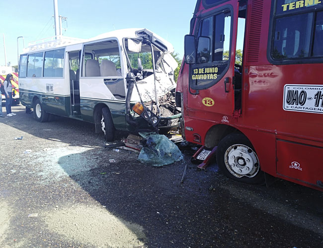 El accidente ocurrió en horas de la mañana de ayer cuando al parecer el conductor de la buseta de transporte público que venía de Bocagrande se cruzó el semáforo en amarillo, montándose sobre el separador y perdiendo el control del vehículo que por la velocidad que llevaba, se cruzó al otro carril, embistiando a la van que iba en sentido contrario por la avenida Santander.