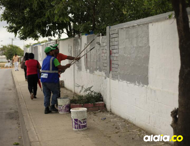 Cerramiento mural en la calle 45 con carrera 38 esquina acera norte.
