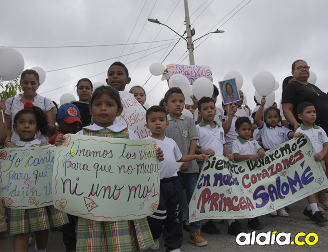 Con globos blancos, pancartas, fotografías de la pequeña y frases pidiendo justicia, marcharon familiares, conocidos y amigos de Salomé Jiménez Mendoza, la niña de 3 años asesinada en medio de un atraco en un bus de la empresa Lucero-San Felipe de Cootrantico, el pasado sábado.