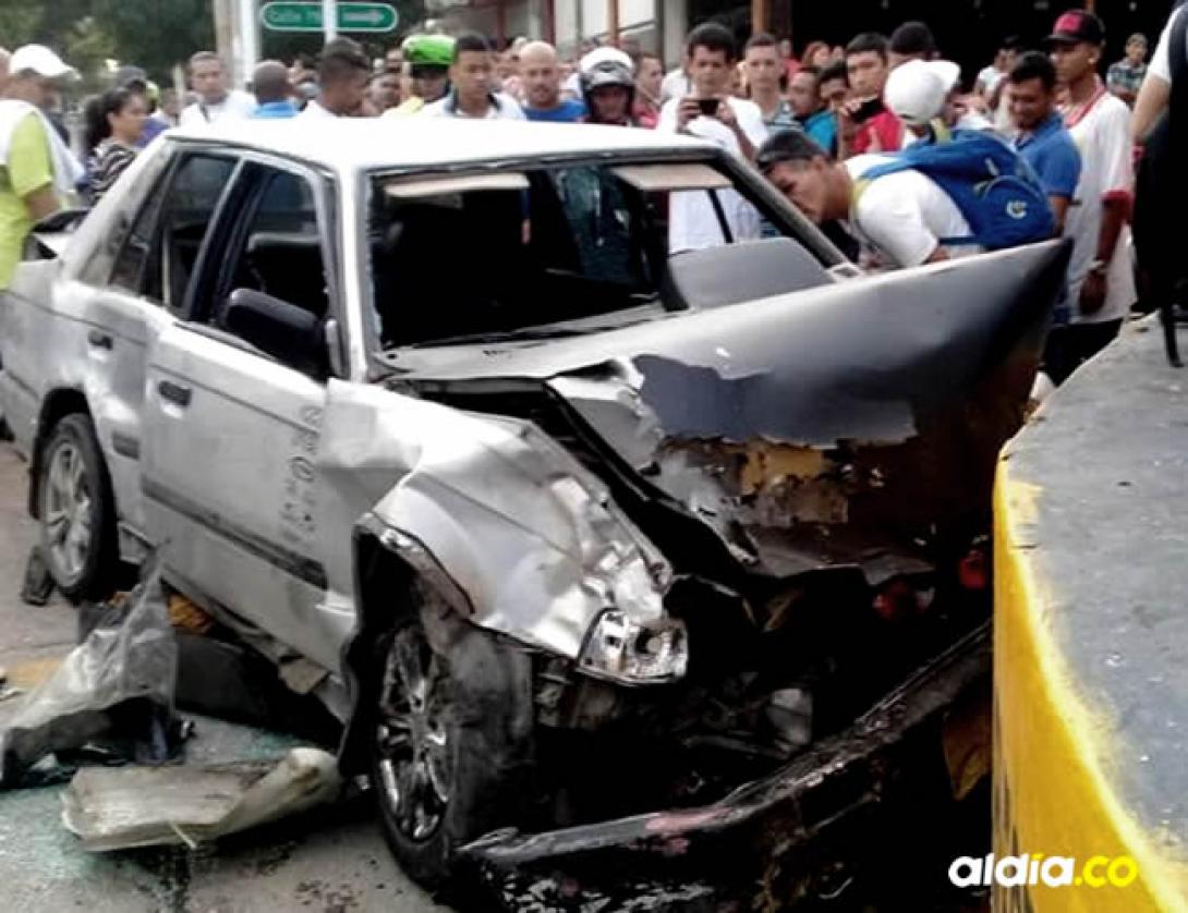 De acuerdo con testigos, el vehículo gris marca Mazda modelo 323 en el que se movilizaban los presuntos delincuentes se estrelló en la carrera 44 con calle 79 al pasar el semáforo en rojo y chocar con un taxi.