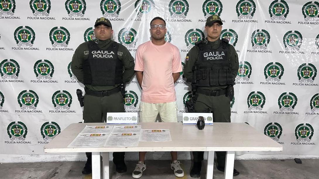 La detención se produjo en vía pública del barrio La Sierrita, en la localidad Metropolitana. Al momento de ser requerido, las autoridades le incautaron una granada y cinco panfletos de carácter extorsivo, que utilizaba para intimidar a comerciantes que se negaban a pagar las exigencias económicas.