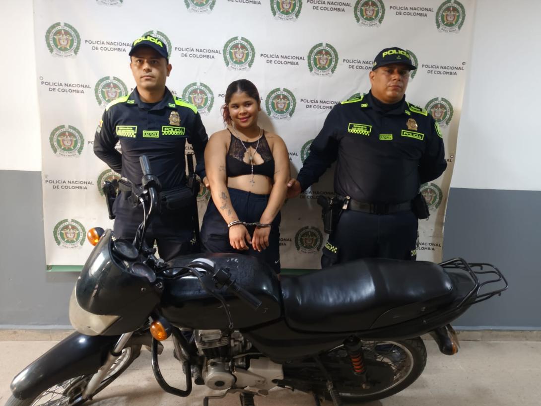 La mujer fue detenida de inmediato, se le informaron sus derechos y fue puesta a disposición de la Fiscalía General de la Nación, junto con las armas incautadas y la motocicleta, para que responda por el delito de fabricación, tráfico y porte ilegal de armas de fuego.