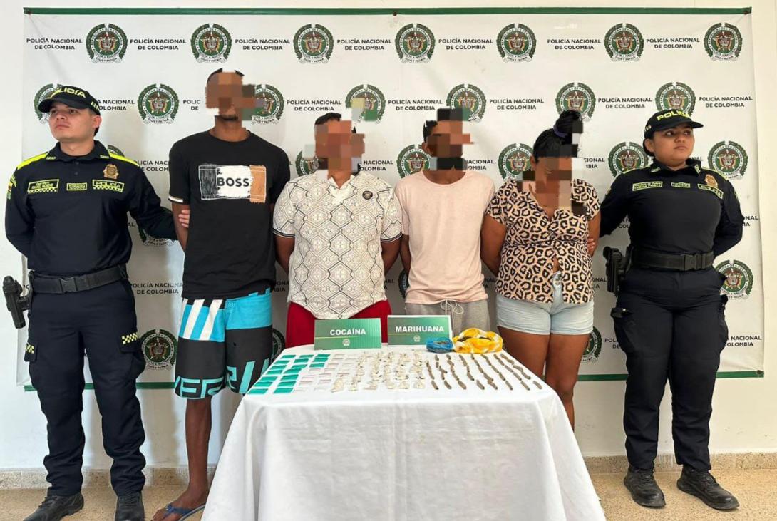 Un operativo de la Policía Nacional en el municipio de Campo de la Cruz dejó como resultado la captura de cuatro presuntos implicados y la incautación de 350 gramos de droga, entre otras evidencias relacionadas con actividades de comercio ilegal de estupefacientes.