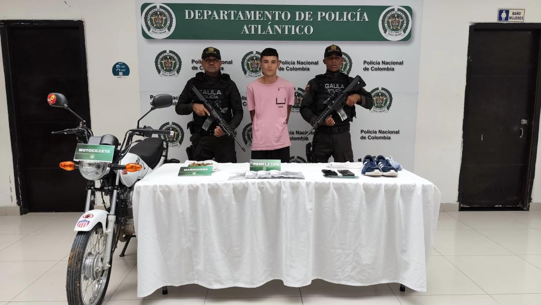 La detención se llevó a cabo durante un allanamiento a una vivienda en el área urbana del municipio de Baranoa. Durante la diligencia, las autoridades incautaron 255 gramos de marihuana, siete panfletos y una motocicleta, elementos clave en la investigación.