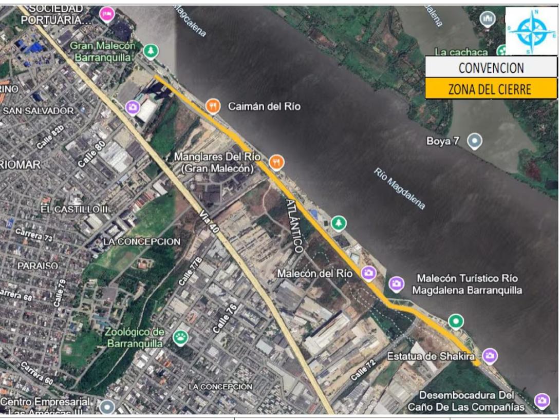 Asimismo, la Calle 72 estará cerrada entre la Vía 40 y la Avenida del Río.