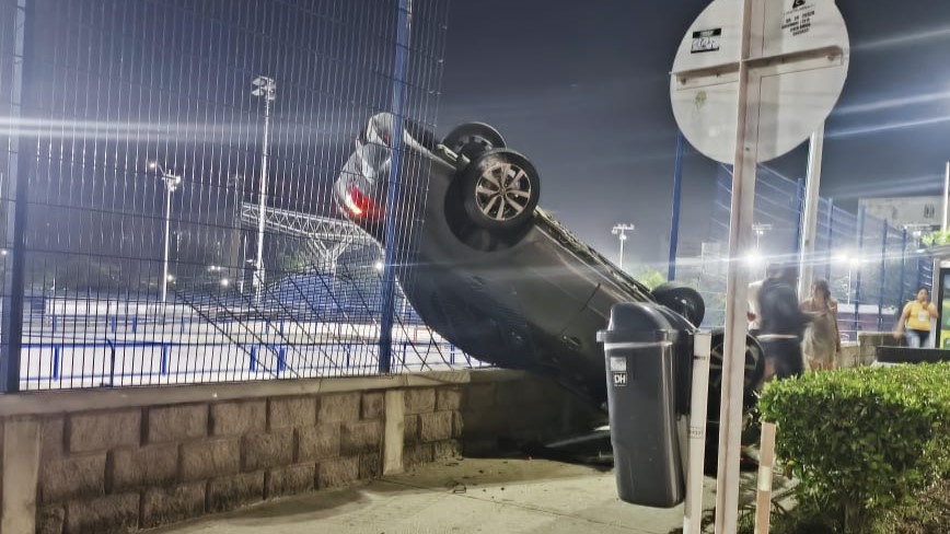 Al llegar a la altura del patinódromo, el vehículo perdió el control, impactó contra el andén, atravesó la valla de seguridad del complejo deportivo y finalmente se volcó, quedando sobre la acera.