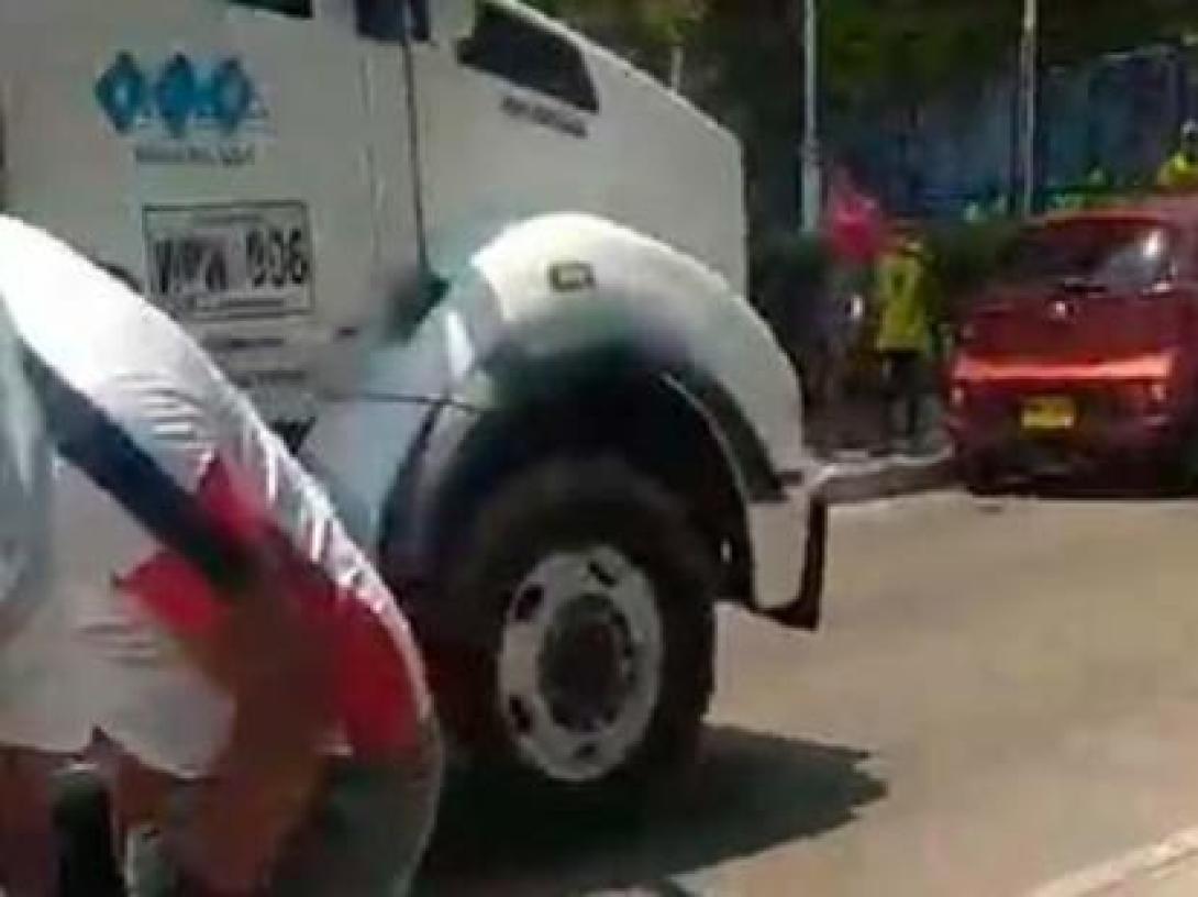 Un grave accidente vial ocurrió en la calle 35 con carrera 14, sur de Barranquilla, involucrando un camión recolector de basura y una motocicleta.