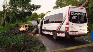 Un frondoso árbol cedió ante la fuerza de la lluvia y cayó sobre una buseta que transitaba por la zona.