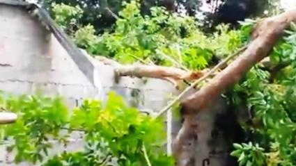 ¡Centenario árbol de caucho cayó sobre una casa!