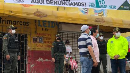 En alianza estratégica con los comerciantes afiliados al gremio de Asaba se instalaron tres pasacalles con la campaña ¡Yo no pago, yo denunció!