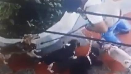 El canino que, al parecer, por el cansancio no quiere levantarse, fue agredido salvajemente por el sujeto.