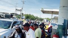 Largas filas de vehículos en las estaciones que aún tienen combustible se observan en esta capital