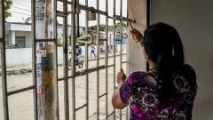 El conductor no se dio cuenta que ella estaba atorada y siguió su camino.