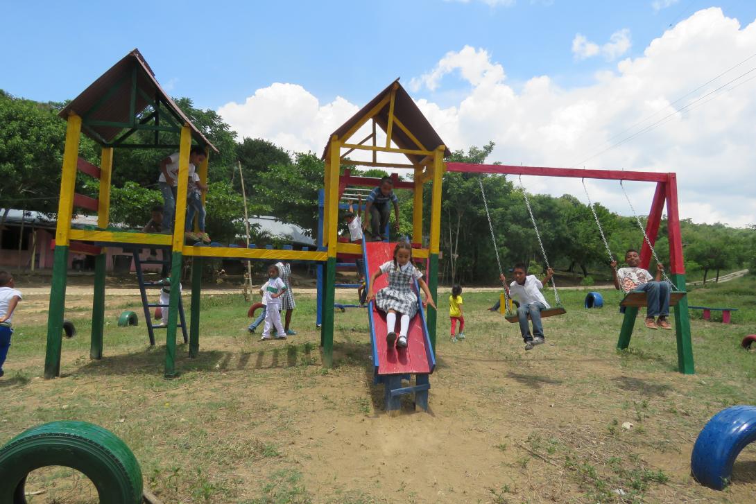 Los días de clase cambiaron para 50 niños de la Vereda Patio Grande, en el municipio de San Jacinto. Un parque los motiva para asistir a su lugar de estudio, al que llegan con largas caminatas de hasta 40 minutos, provenientes de más de cinco caseríos cercanos.