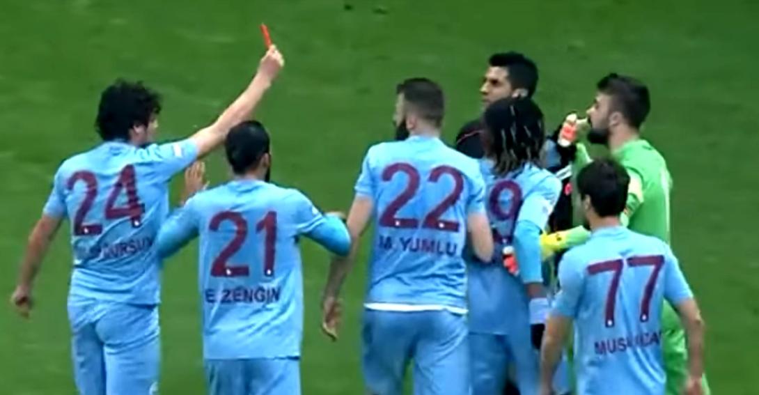 En el minuto 87, el árbitro del juego entre el Trabzonspor y el Galatasaray pitó penalti en contra del Trabzonspor y expulsó al jugador que habia cometido falta –ya habían sido 3 los sancionados con el cartón rojo por el colegiado-. Esta acción generó una ola de protestas de los afectados.