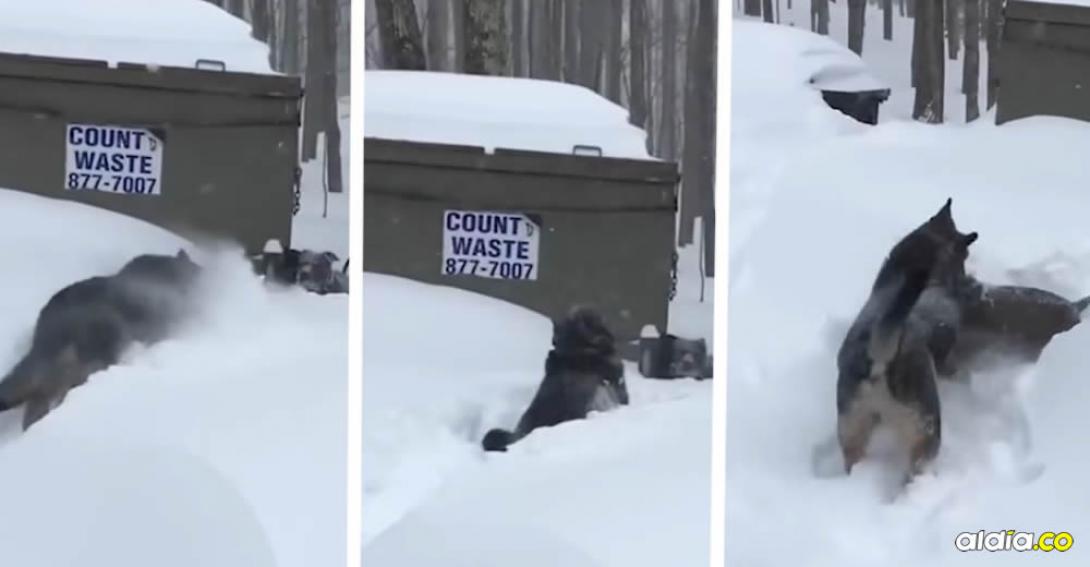 Es impresionante el ejemplo de amistad que da este Pastor Alemán al salvar la vida de un perro de raza mediana que se encontraba atascado en la nieve.