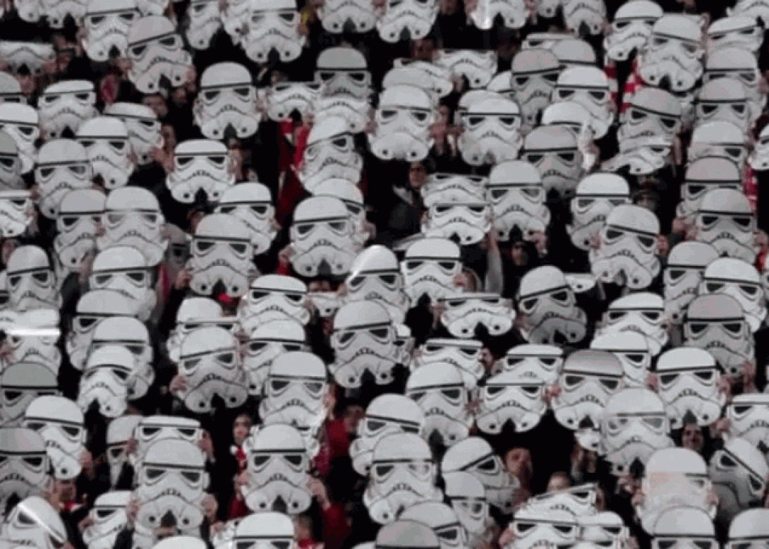 La hinchada del equipo PFC CSKA Sofia de Bulgaría se transformó en un ejército de ‘Tropas imperiales', el ejército comandado por Darth Vader, como parte de una coreografía alusiva a Star Wars, antes de enfrentarse al FC Sozopol, equipo del mismo país.