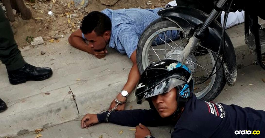 Sin embargo, se dan cuenta de que la Policía se aproxima y se bajan del bus para huir en la moto. Para mala suerte de los hampones, las autoridades los alcanzan en la calle 118 con carrera 36 para poder capturarlos.