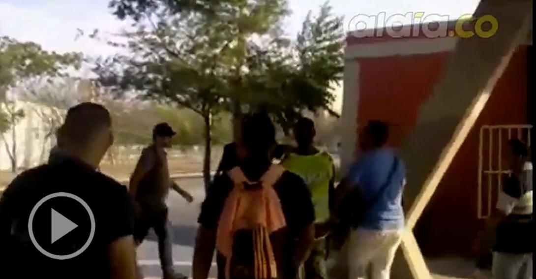 Una escena insólita se vivió hacia las 4:30 pm. de la tarde de este jueves, en la estación de Transmetro de Joe Arroyo, cuando un joven sospechoso de haber robado agredió a puños y patadas a un auxiliar bachiler de la Policía que lo requirió para una requisa.