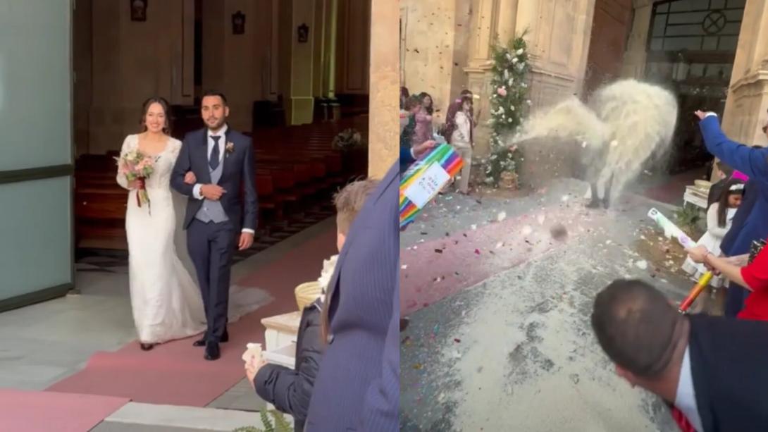 En España, una boda se convirtió en un tema de gran debate en las redes sociales después de que dos invitados decidieran recibir a los recién casados con una lluvia de arroz lanzada con palas al salir de la iglesia.
