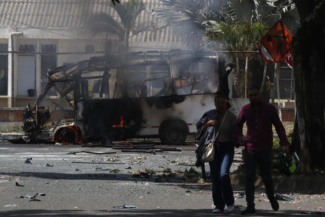 Según versiones conocidas hasta el momento, los responsables habrían utilizado un bus escolar como parte de la acción criminal. Incluso, se reportó un vehículo en llamas tras la explosión, mientras unidades del Ejército y de la Policía acordonaban el área para descartar nuevos riesgos.