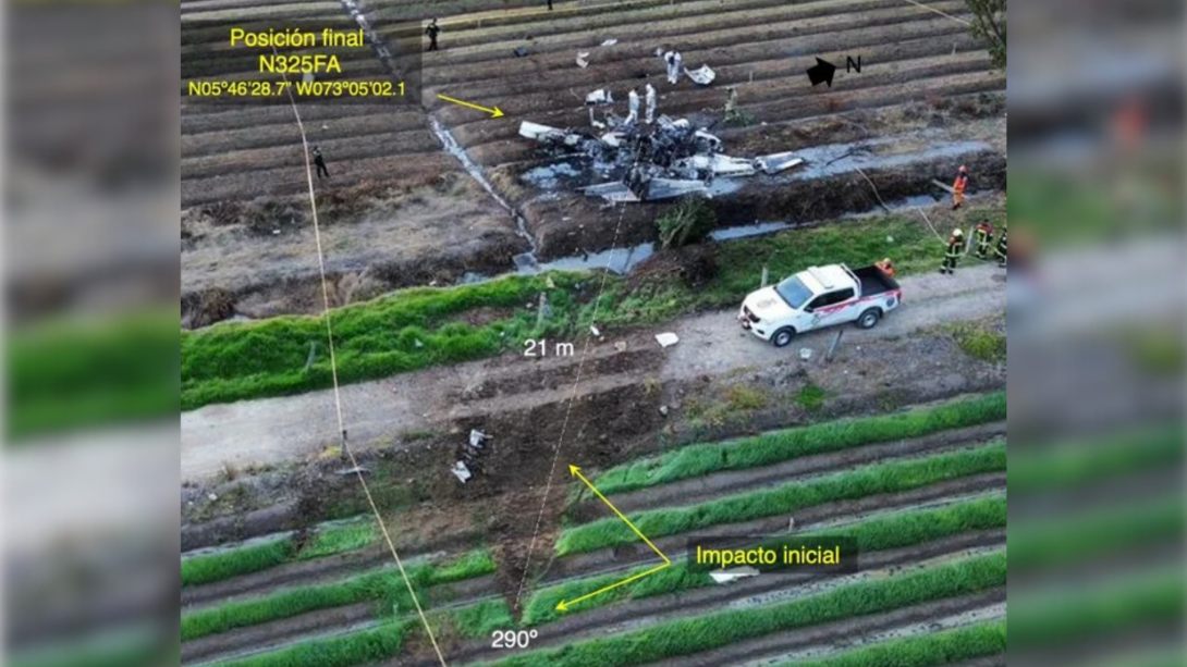 Según el reporte, el accidente se produjo aproximadamente dos minutos después del despegue desde el aeropuerto Juan José Rondón, en Paipa. La aeronave perdió altura, colisionó contra el terreno y, debido al impacto y al incendio posterior, los seis ocupantes, entre ellos Jiménez y el piloto, murieron en el sitio del siniestro.