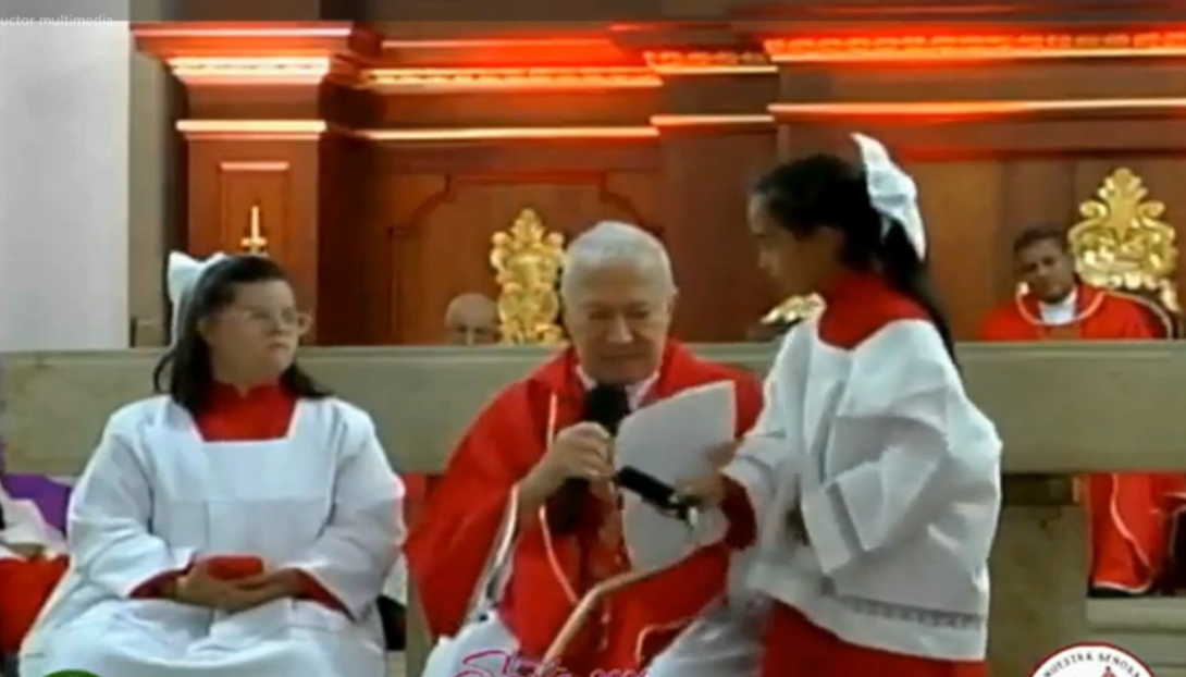 La escena fue captada mientras se desarrollaba la liturgia frente a los feligreses. En las imágenes se observa cómo el religioso interrumpe el momento y le pide a la menor que se retire del lugar donde se encontraba en el altar. Durante la acción se le escucha decirle “¡quítese de ahí!”, mientras la aparta para continuar con la celebración.