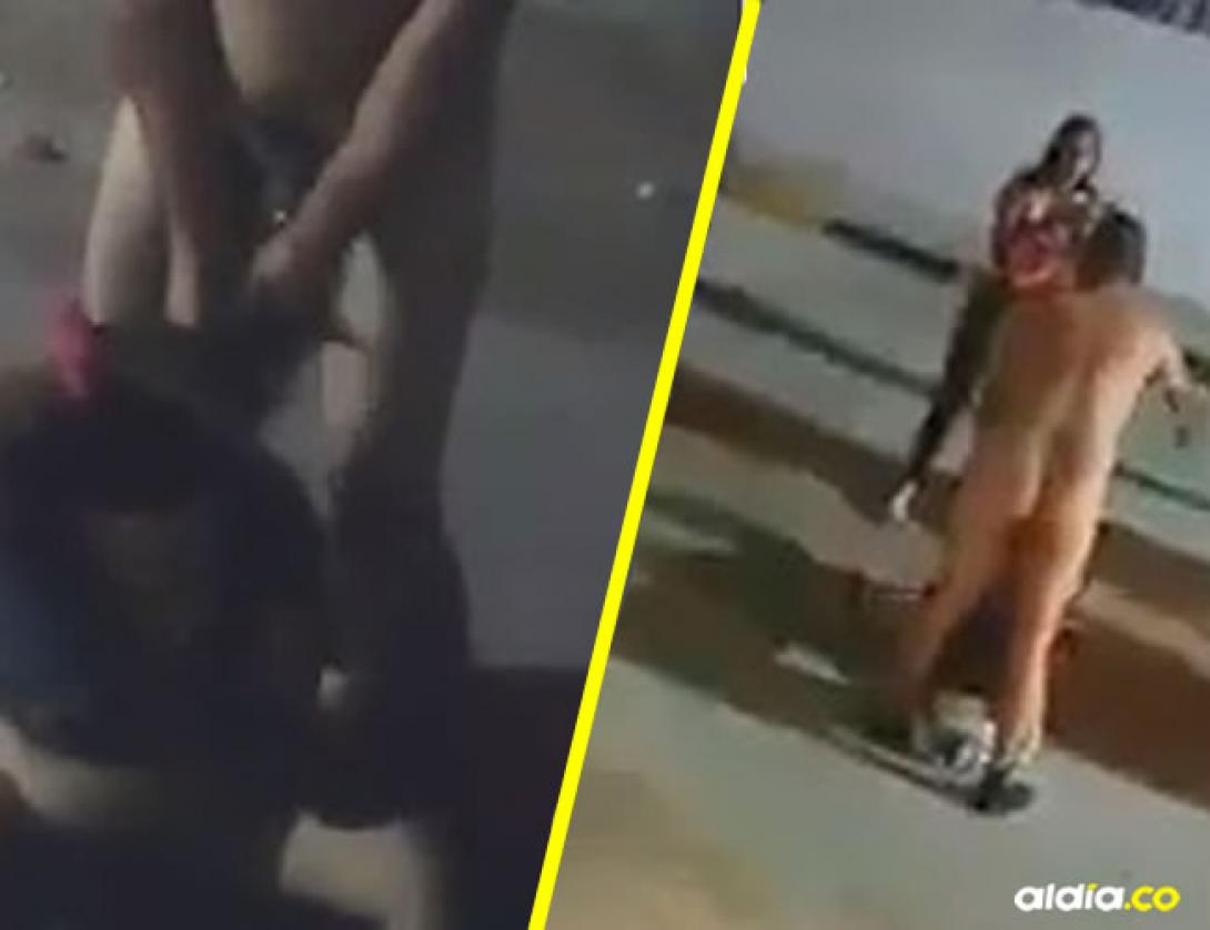 Los testigos de la escena grabaron parte del incidente con sus teléfonos celulares. En las imágenes la mujer pide auxilio mientras el hombre le grita que le devuelva los $400 mil pesos que le robó. Al parecer la mujer también se llevó la ropa del hombre y la tiró al salir del motel, por lo que el tipo estaba ‘empeloto’.