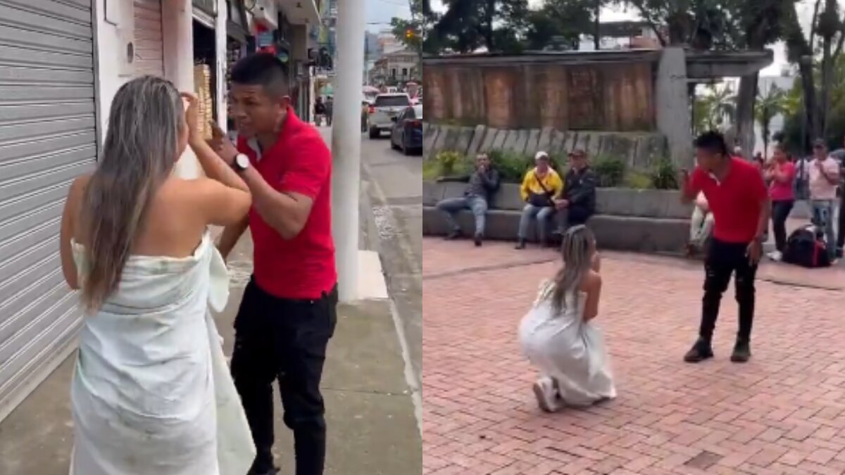La ciudadanía observaba y grababa la escena al mismo tiempo. En el video también se puede ver cómo la mujer, visiblemente afectada, llegó a arrodillarse frente a su pareja para pedirle perdón de rodillas. Aunque, el hombre, claramente furioso, continuó alejándose de ella.