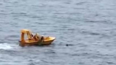 Videos difundidos en redes sociales muestran chalecos salvavidas anaranjados flotando cerca de un bote de emergencia, mientras el crucero disminuía su velocidad.